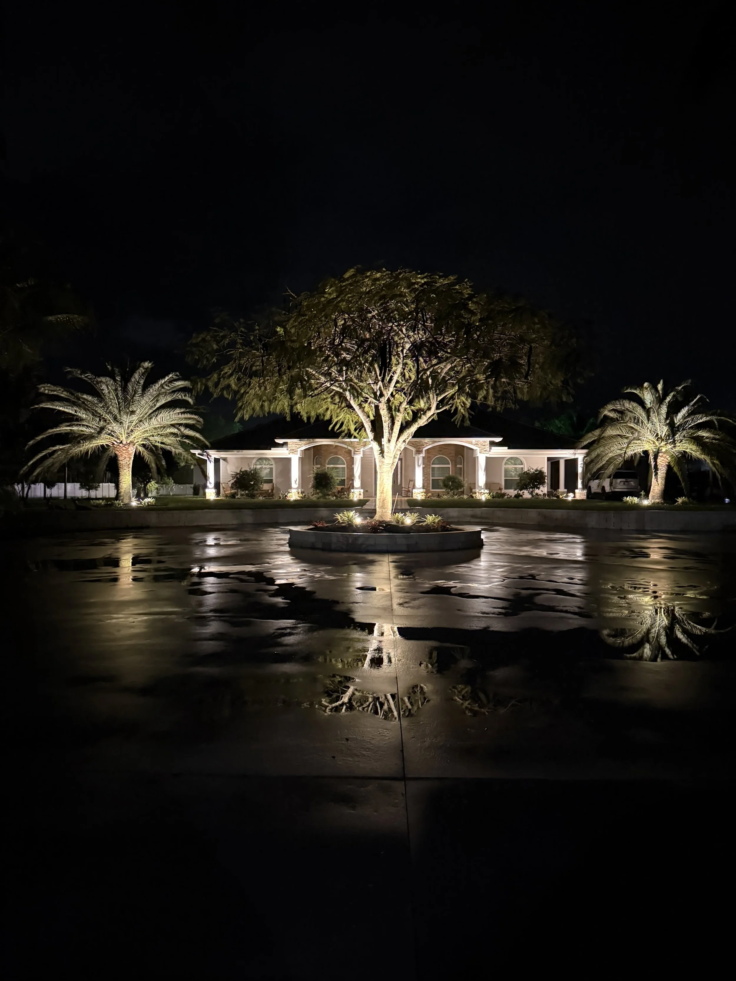 Professionally designed outdoor lighting that highlights your home’s architecture, enhances your landscaping or pool cage, and improves visibility and safety after dark.